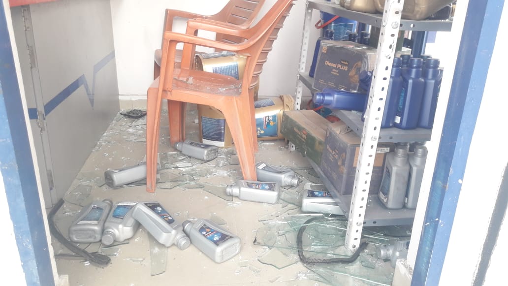 हरदिया मोड़ पर स्थित हमारा पेट्रोल पंप में 25 से 30 की संख्या में लाठी डंडा ईट पत्थर लेकर तोड़फोड़ करने पहुंचे असामाजिक तत्वों ने सबसे पहले पेट्रोल पंप पर केबिन के शीशे तोड़ दिए। इतने सारे लोगों को एक साथ तोड़फोड़ करते देख पेट्रोल पंप पर काम कर रहे कर्मचारी भी भाग खड़े हुए। इसके बाद पंप पर काम करने वाले कर्मचारी ने इसकी सूचना मोबाइल फोन से पेट्रोल पंप के मालिक को दिया।