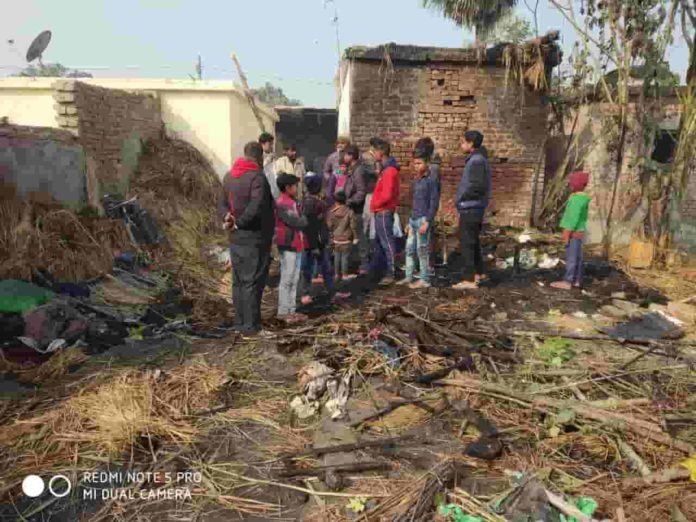 गोपालगंज: जिले के थावे थाना के रामचंद्रपुर पंचायत के गवन्दरी फकीराना गांव में दलित टोले में मंगलवार की देर रात एक झोंपड़ी में आग लगने से हजारों की संपत्ति जलकर राख हो गई।जिसमें दो बकरी भी जल गई। इसके साथ ही एक महिला भी झुलस गई। बताया जाता है, की धर्मनाथ राम अपने पूरे परिवार के साथ झोपड़ी में सो रहे थे। उसी दौरान मंगलवार की रात झोपड़ी में अचानक आग लगने से दो बकरी जल गई।वहीं घर में सो रहे बच्चों को बचाने के दौरान महिला भी गंभीर रूप से झुलस गई है। पीड़ित महिला का दोनों हाथ व चेहरा झुलस गया है। जिसे स्थानीय अस्पताल में भर्ती कराया गया है। जहां इलाज चल रहा है।